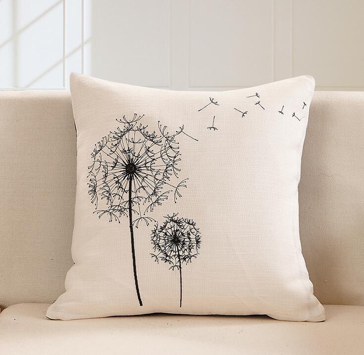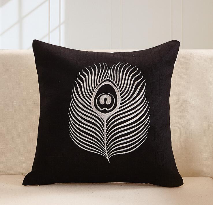 北歐黑白魚棉麻刺繡抱枕沙發靠墊含芯辦公室床頭靠墊腰枕