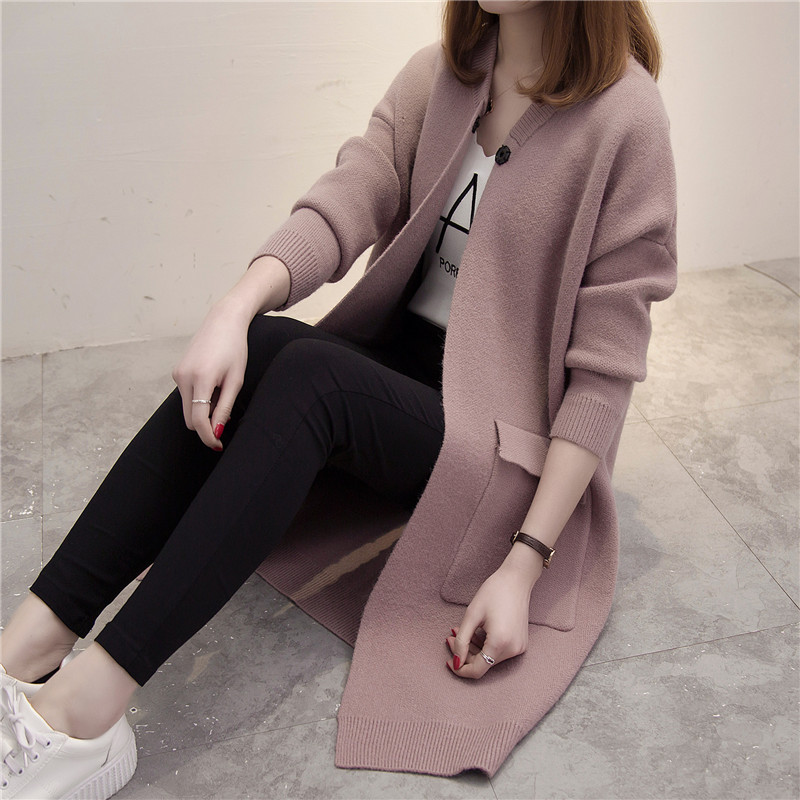 冬季女裝開衫上衣女寬松純色加厚打底衫中長款長袖外套韓版新款潮