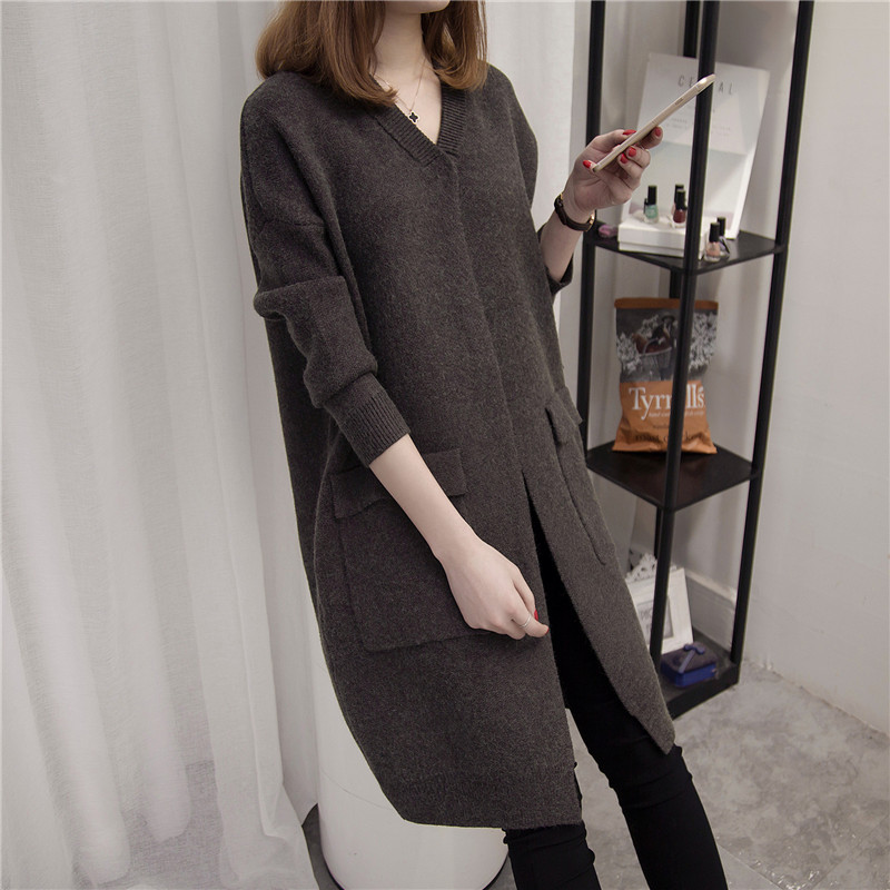 / 冬季女裝開衫上衣女寬松純色加厚打底衫中長款長袖外套韓版新款潮