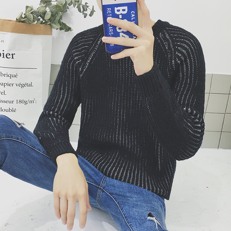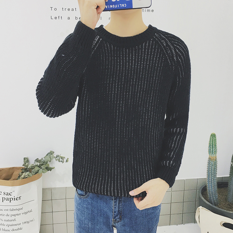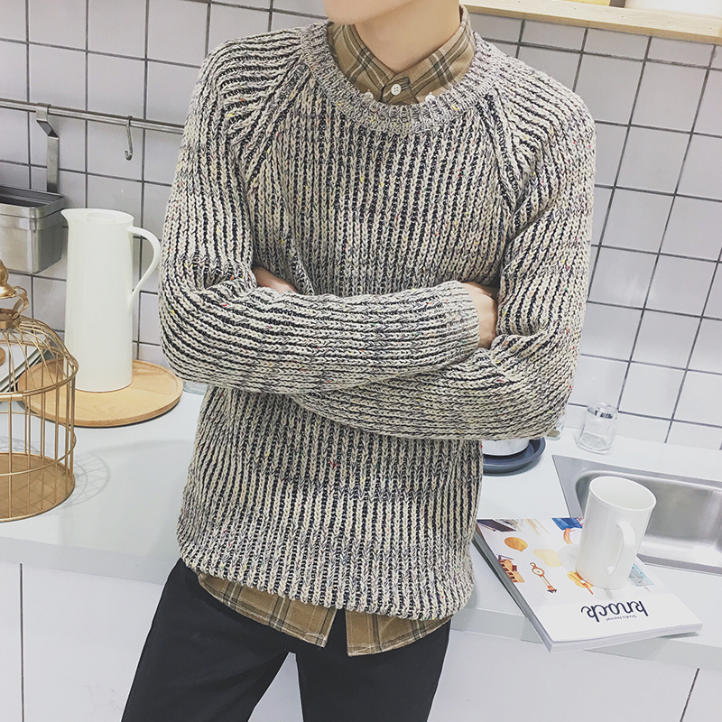 / 男裝冬季新款韓版插肩袖圓領加厚打底針織衫毛衣男