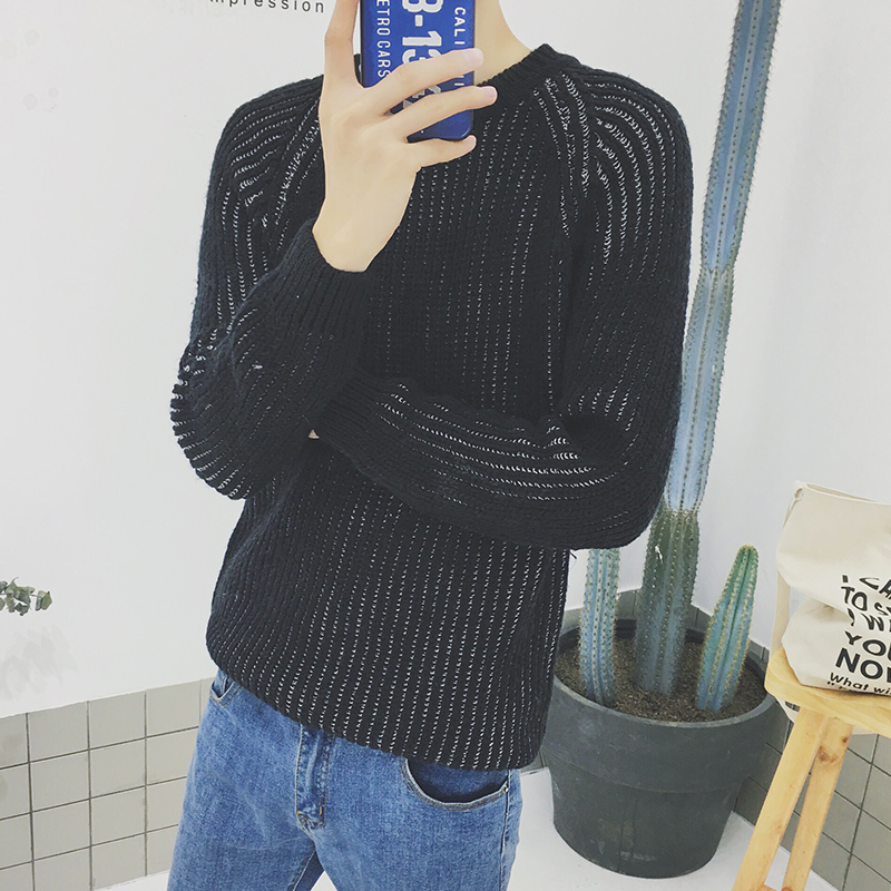 男裝冬季新款韓版插肩袖圓領加厚打底針織衫毛衣男
