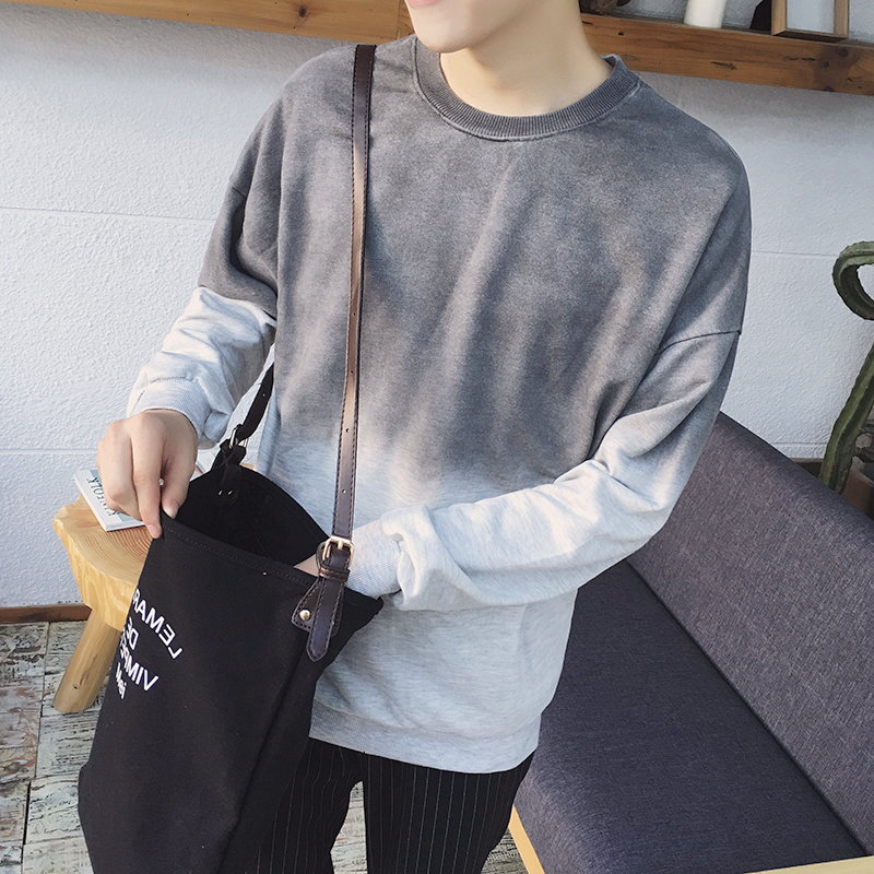 / 秋季新款日系復古百搭漸變色男士長袖圓領衛衣外套