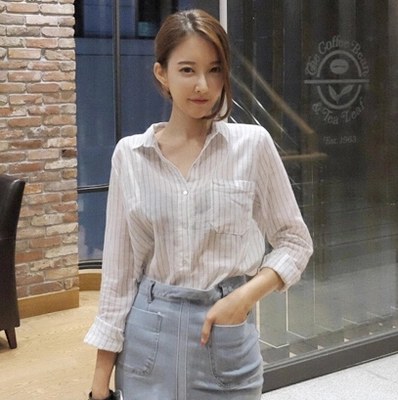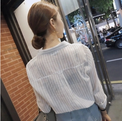 / 2017秋新款韓版休閑豎條紋長袖棉麻襯衫百搭小清新襯衣薄款上衣女