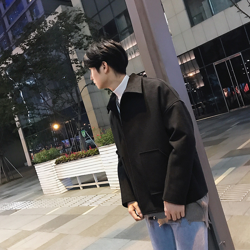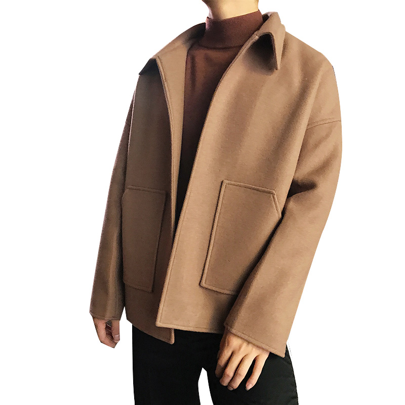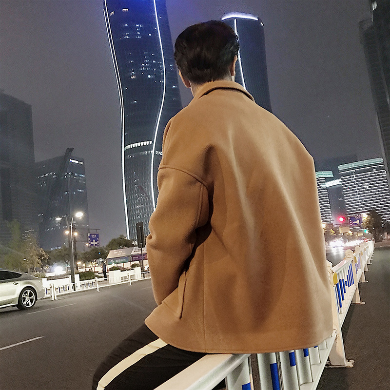 / 文藝男女店秋季男士毛呢大衣短款落肩韓版潮流情侶寬松男裝外套