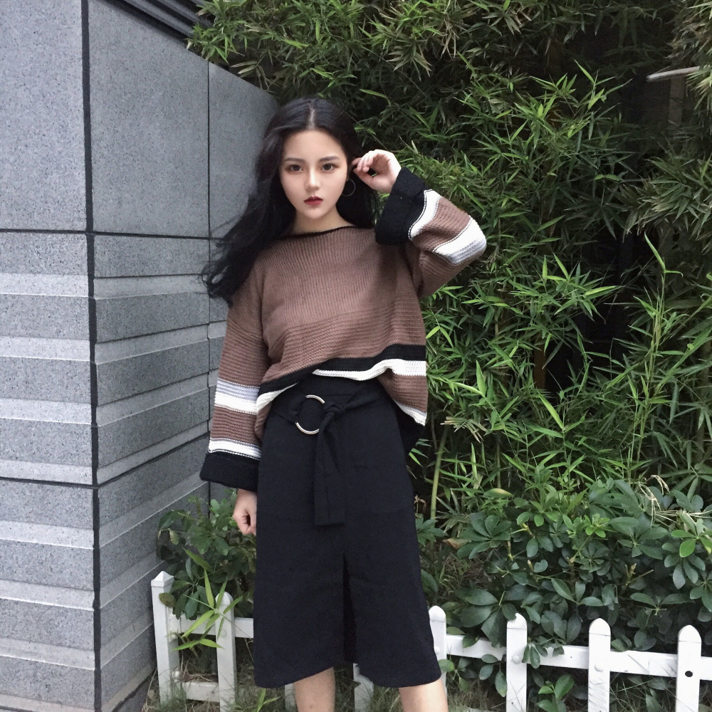 下半身搭配簡單的毛線裙短裙打底褲都OK的 特別好穿搭