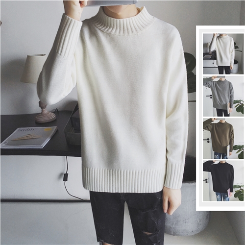 / 冬裝新款韓版半高領男士修身套頭加厚毛衣針織衫