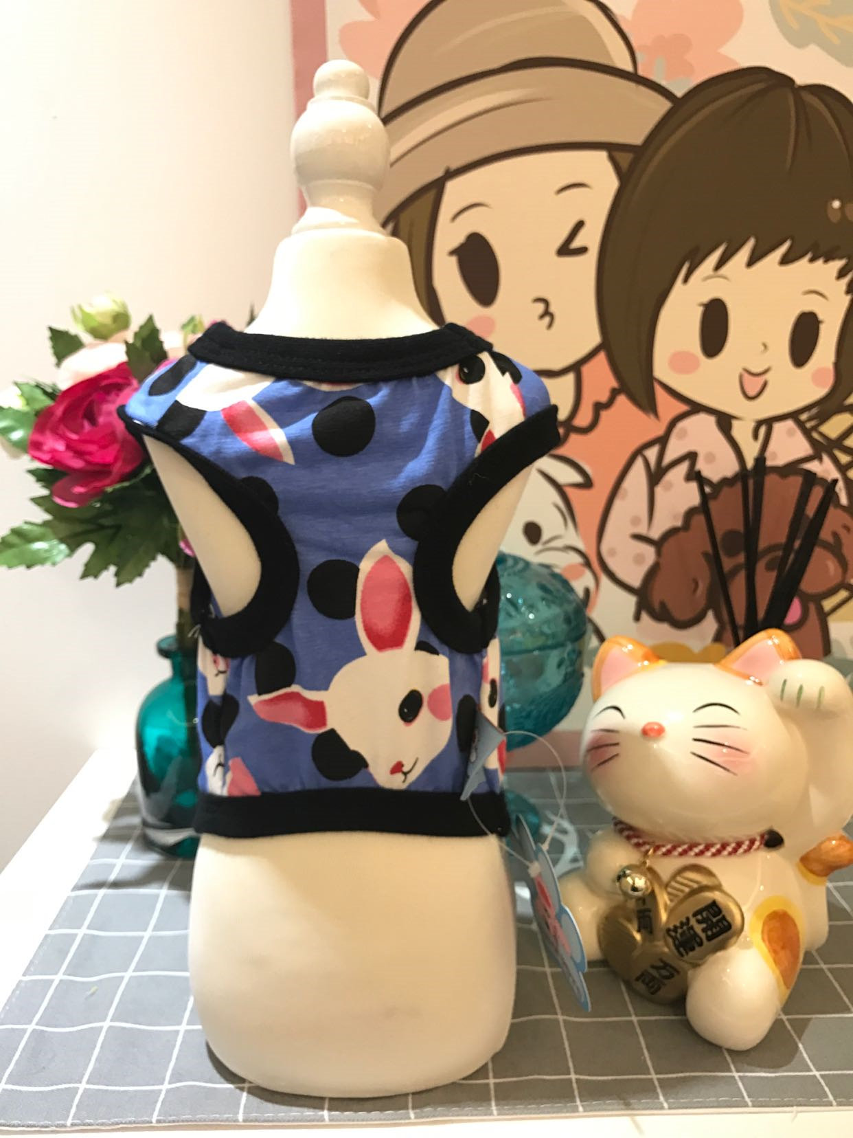 文藝范十足的兔兔系列哦!!!~~~~~~超級好看的!!拿到手就知道面料多好啦哈哈~~舒服的全棉材質!!你會喜歡噠~~~萌萌噠~~帥帥噠~~~可愛到爆哦!!版型非常好!!~上身很好看呢~下面是丸子家小模特馬爾濟斯小團團~恩恩真的很好看很顯身材哈哈哈~~