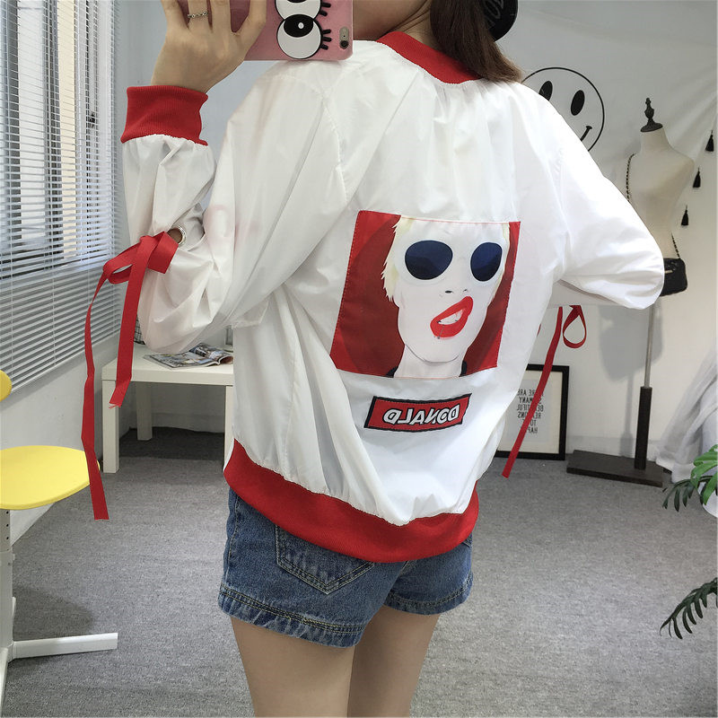 韓國ulzzang夏裝原宿風bf寬松飄帶連帽外套女韓版學生防曬衣上衣