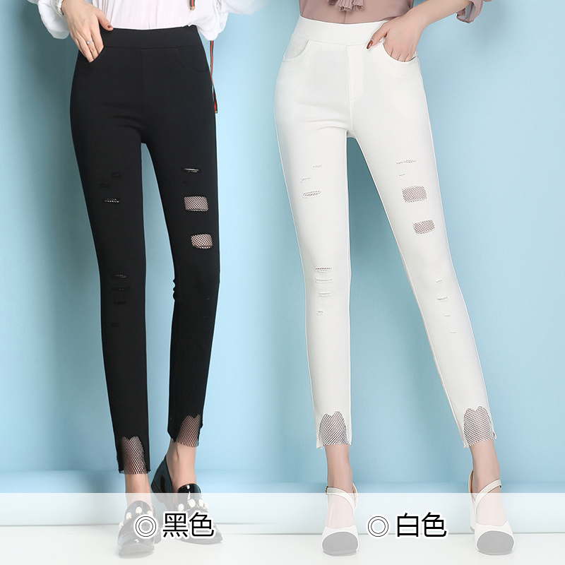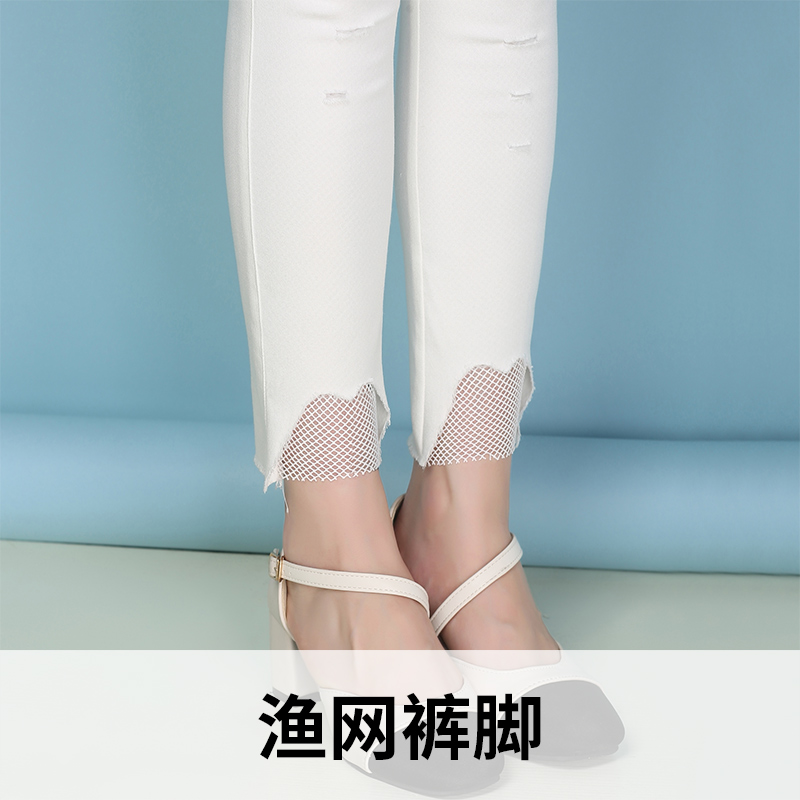 / 白色破洞牛仔褲女九分褲寬松春夏季新款高腰韓版學生哈倫褲潮