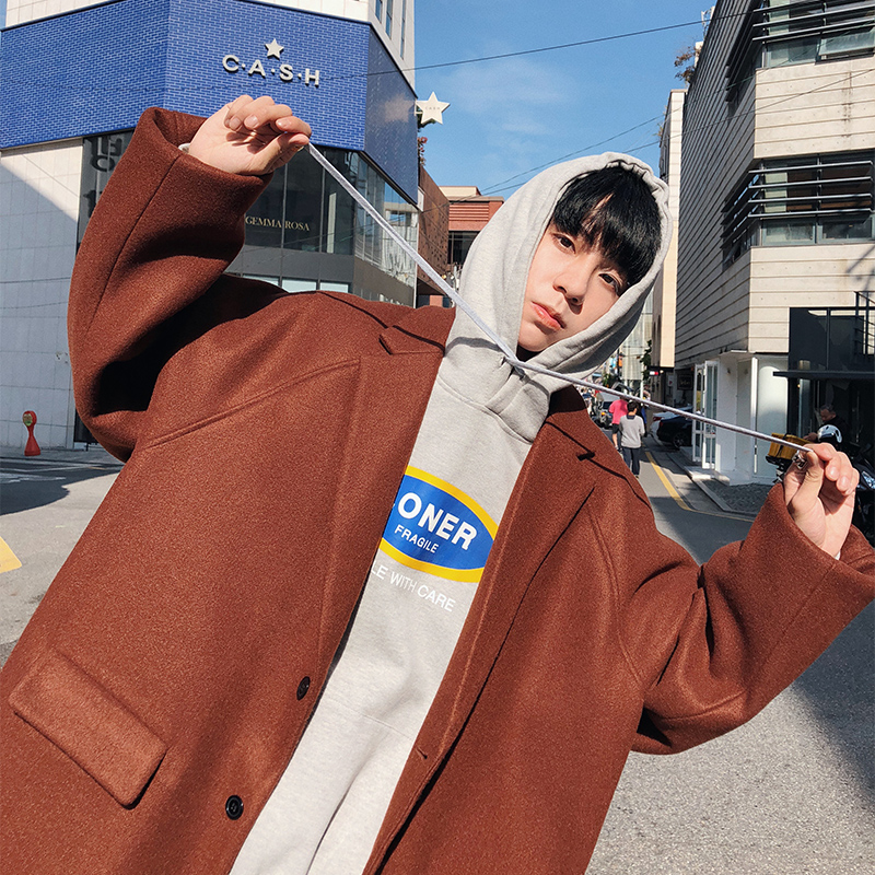 / 文藝男女店毛呢大衣韓版中長款外套秋冬寬松潮流男士風衣冬季英倫
