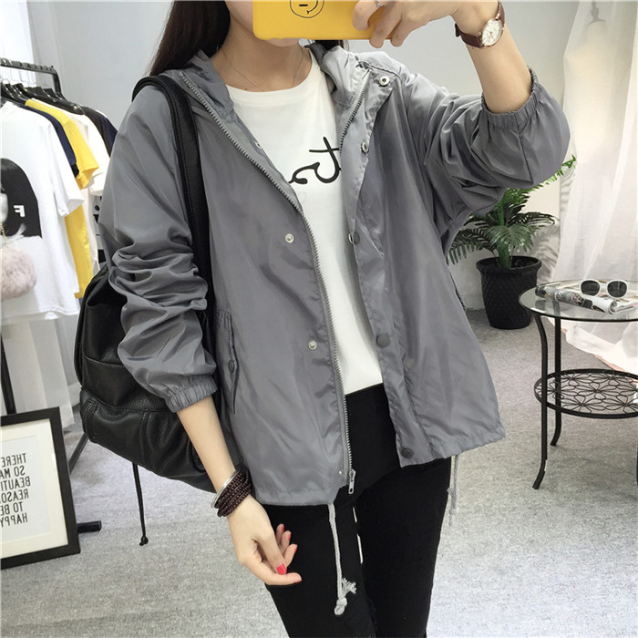 防曬衣女韓版新款2017百搭原宿bf風學生夏季薄外套短寬松連帽潮服