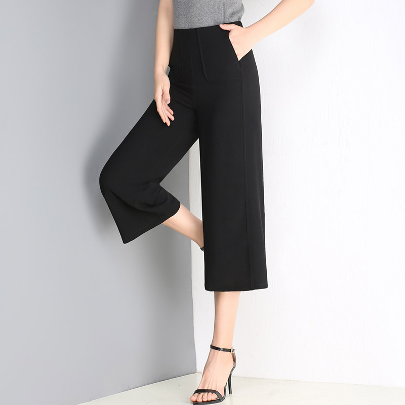 / 七分闊腿褲夏女高腰韓版學生顯瘦春季新款潮百搭寬松九分褲子