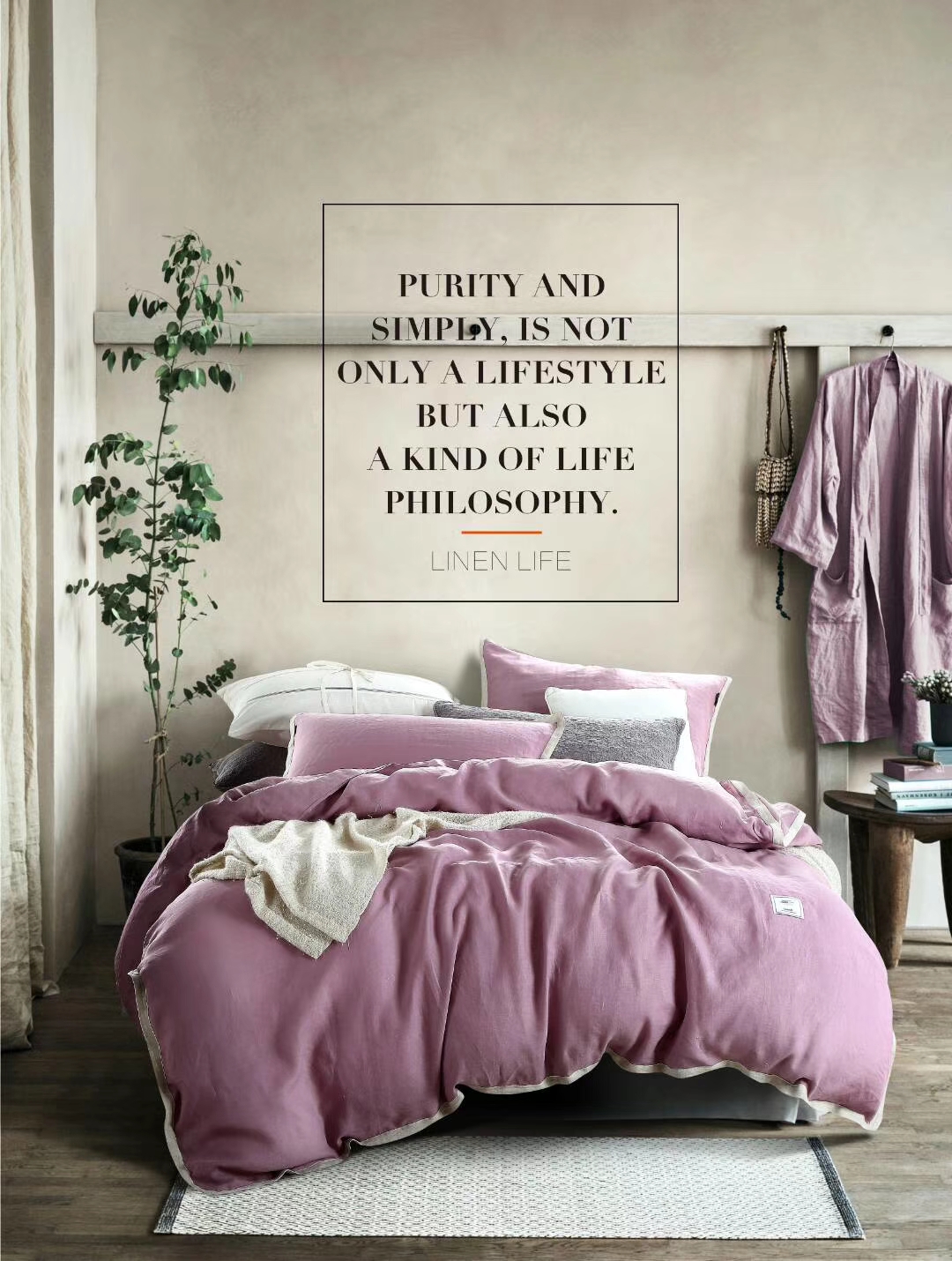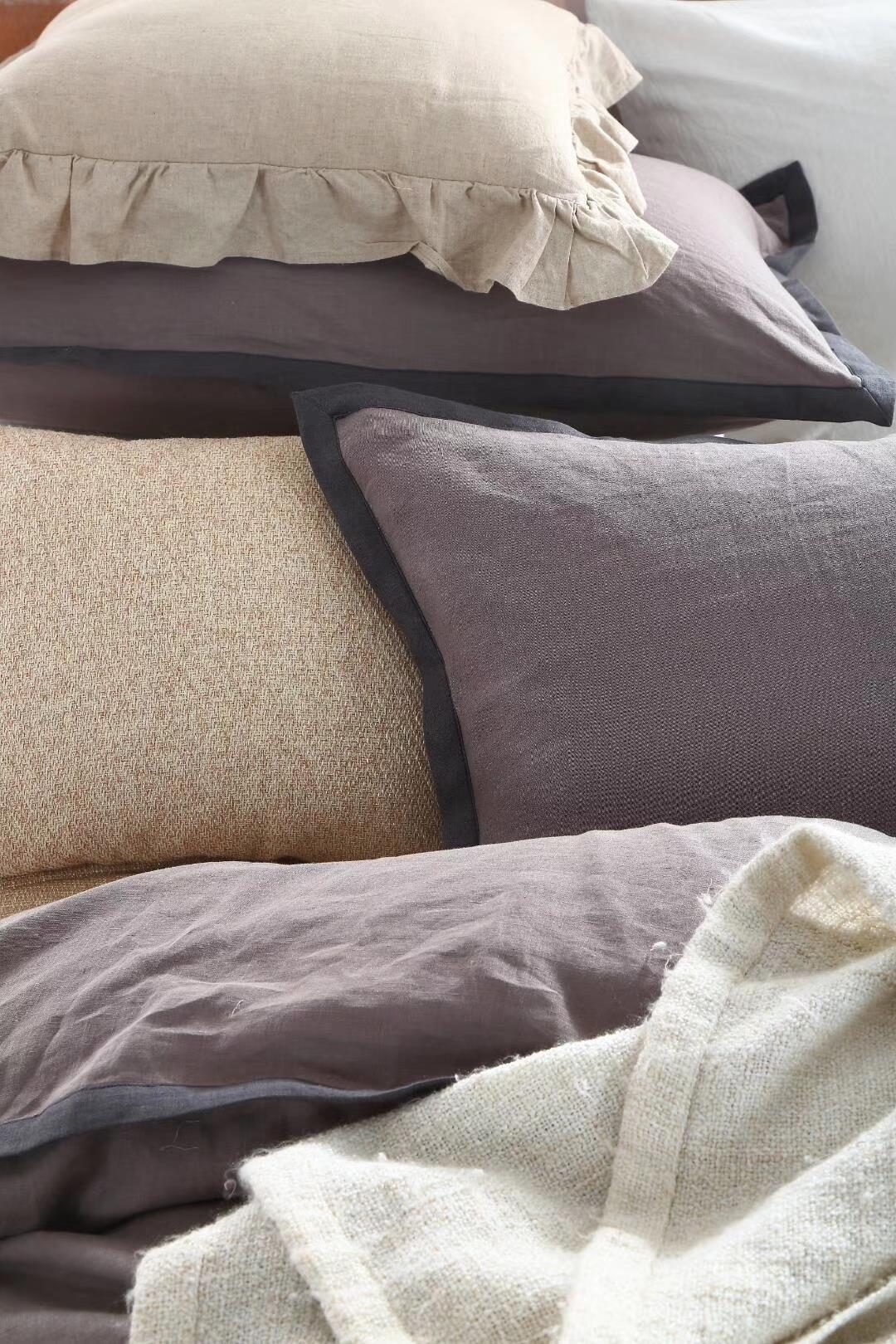 / 冬季新品純亞麻純色簡約日系風格標準加大四件套床上用品
