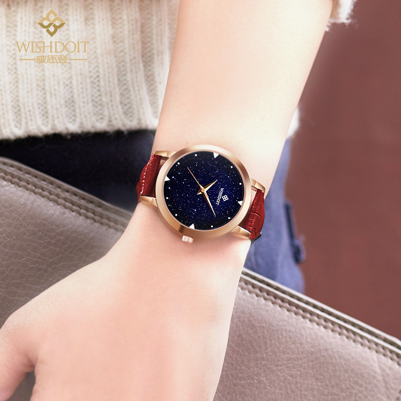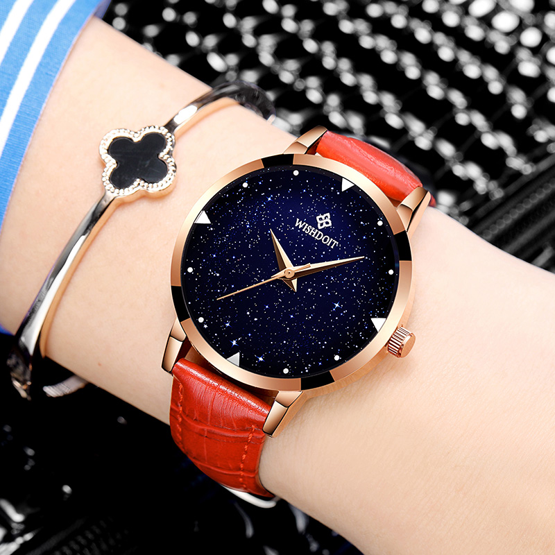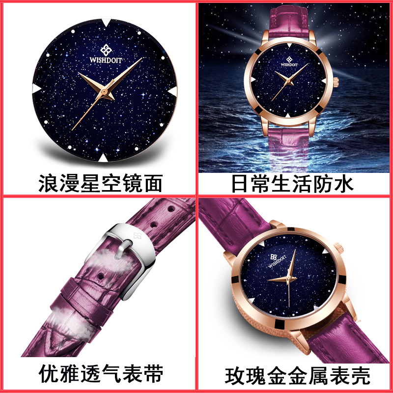 正品手表女士學生時尚裝潮流防水皮帶石英腕表休閑簡約星空女表