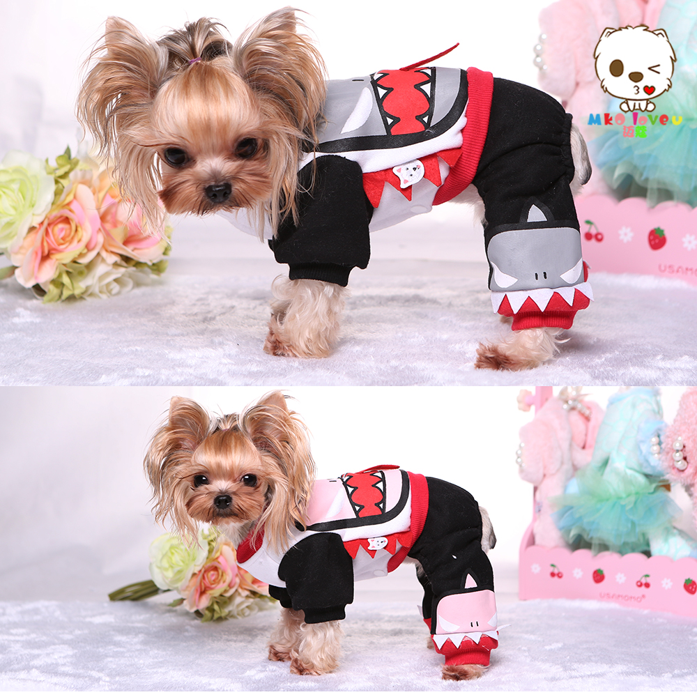 鯊魚變身寵物泰迪狗狗貴賓犬貓咪衣服裝秋冬四腳裝公狗