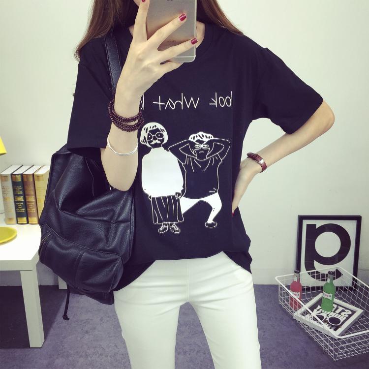 / 韓版學生半袖大碼女裝t恤衫短袖寬松圓領卡通上衣休閑打底衫夏裝