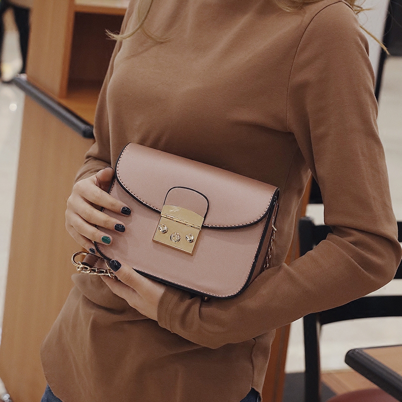 / 新款小包包女韓版迷你小方包鎖扣鏈條單肩女包簡約百搭斜挎包
