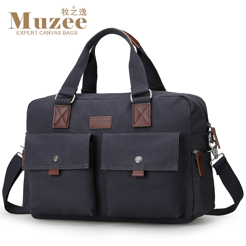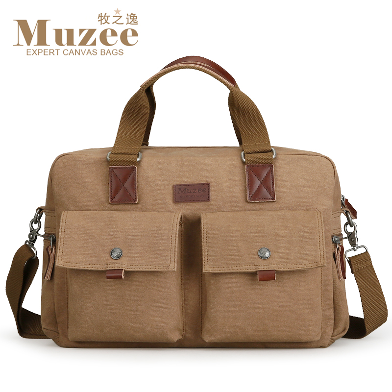 / 手提包男士休閑帆布包青年商務公文包單肩斜挎電腦包旅行包