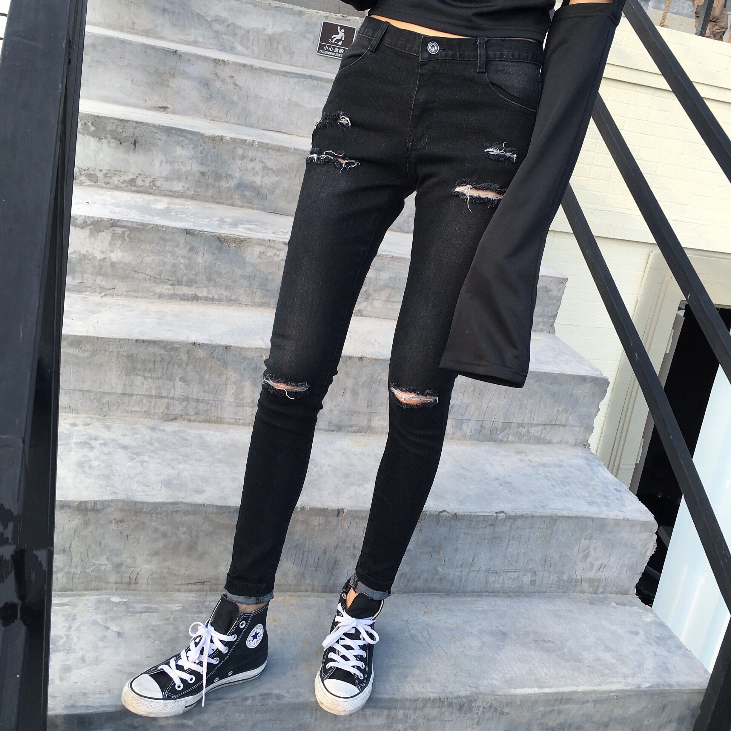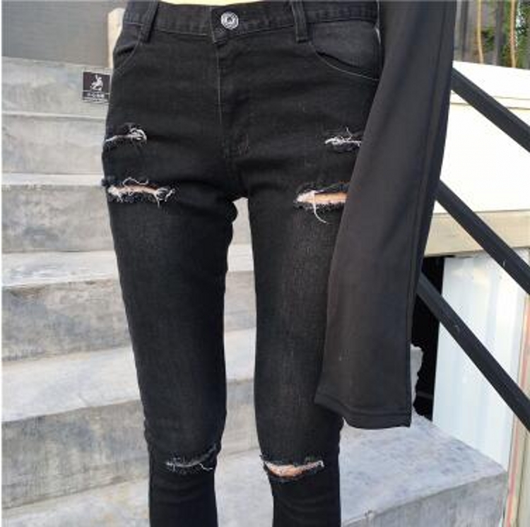 膝蓋后面的破洞層次立現 自然的磨毛流蘇