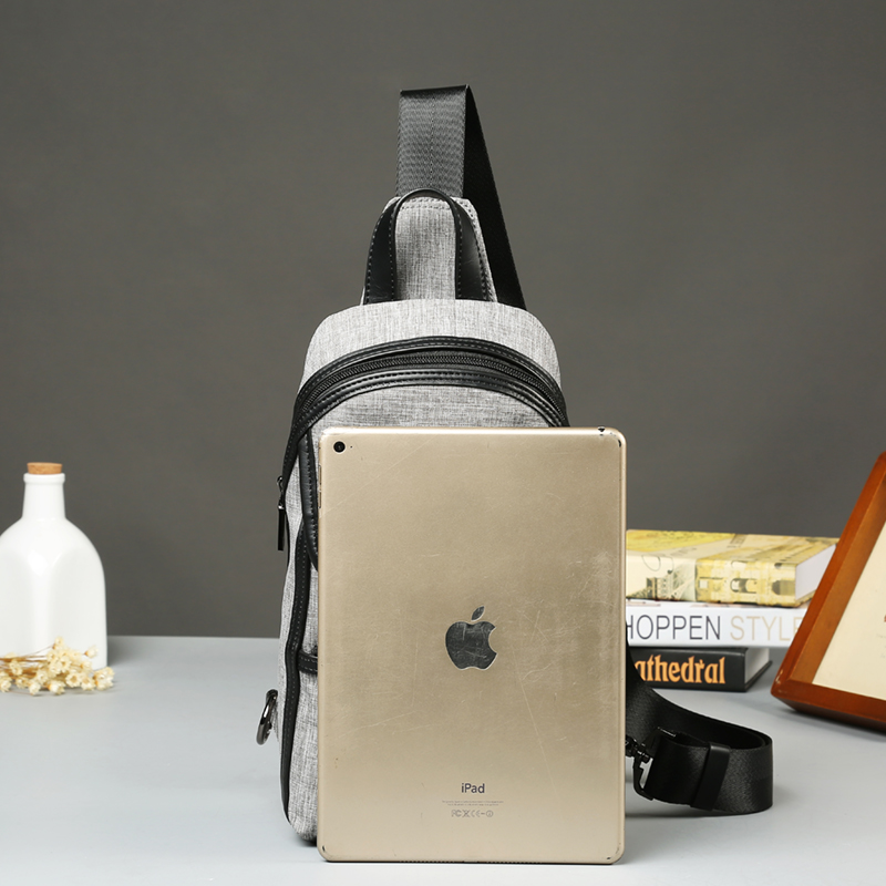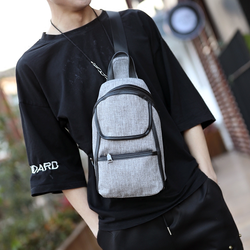 / 韓版男包灰色男士小胸包潮流耐磨帆布小挎包單肩斜跨包潮包文藝