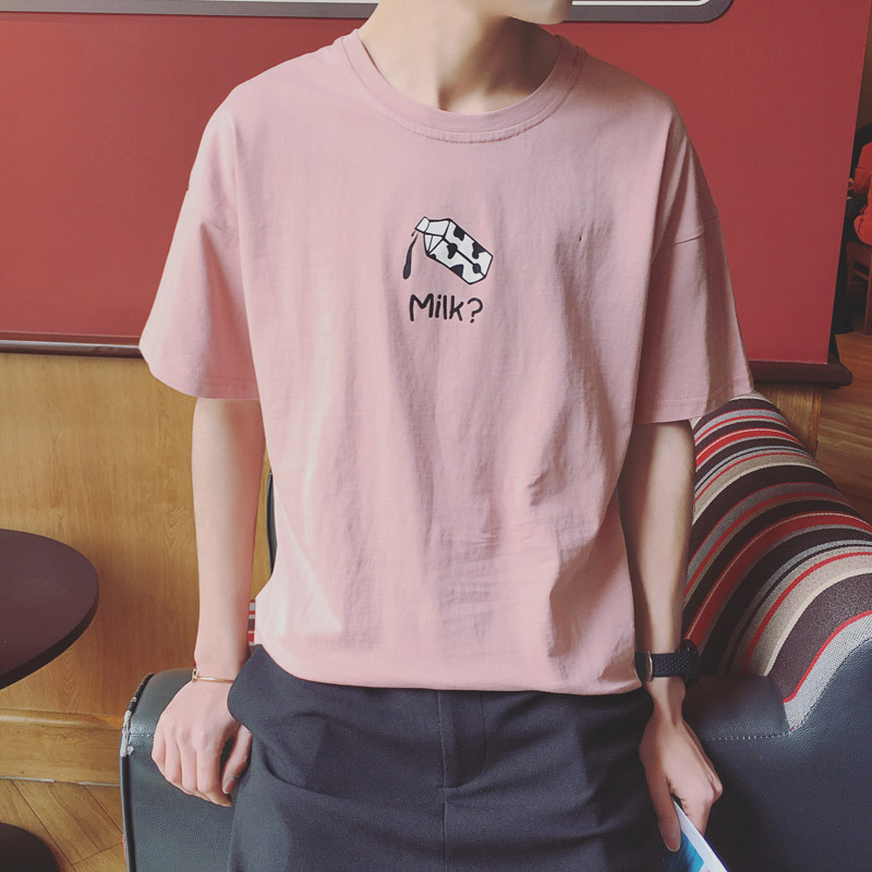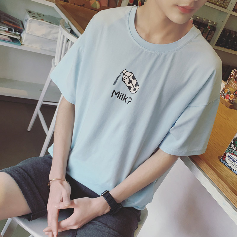 / 原創夏裝牛奶印花卡通短袖港風圓領男士短袖T恤潮