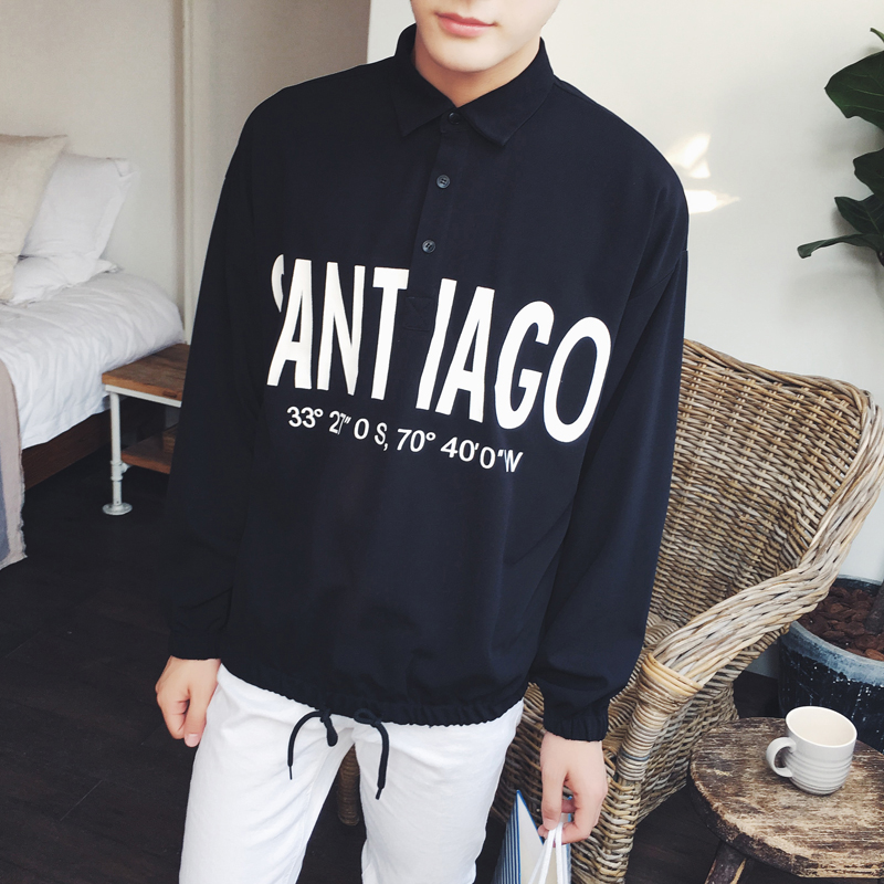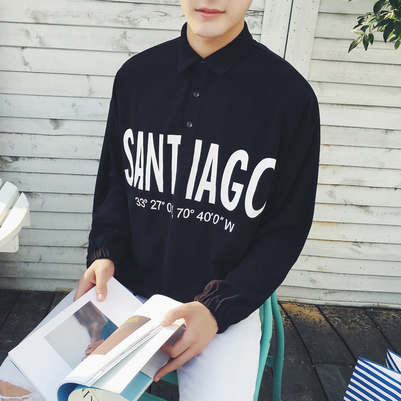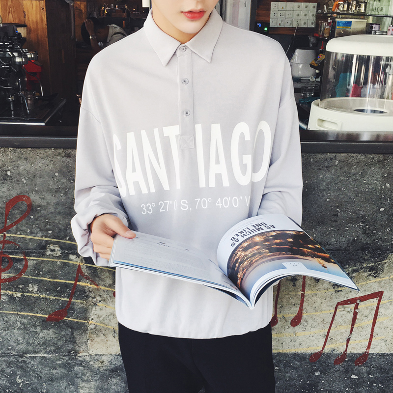 / 男裝字母印花尖領修身男士襯衣春季韓版長袖襯衫
