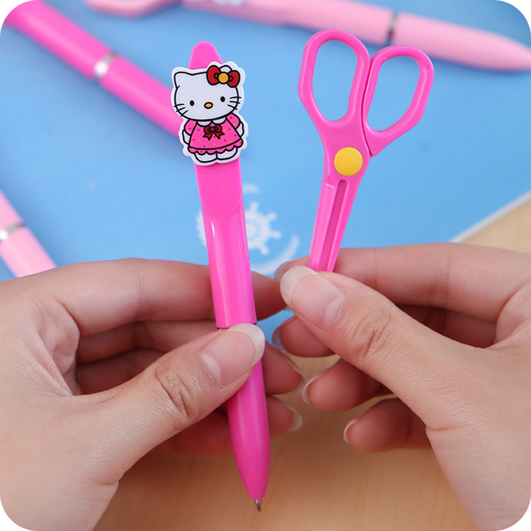/ 韓國創意文具學習用品可愛卡通KT貓圓珠筆帶小剪刀小學生獎品禮物