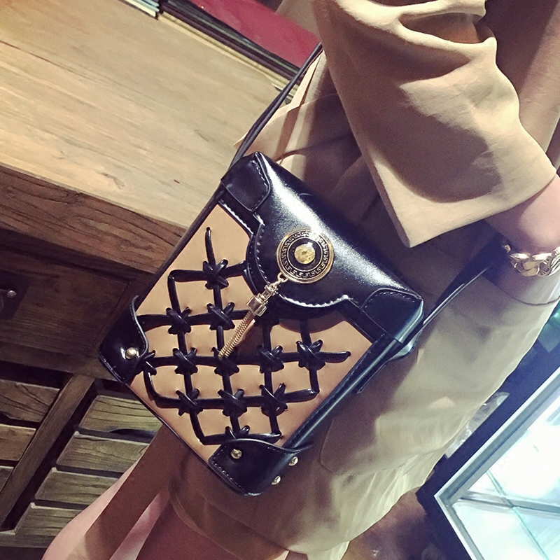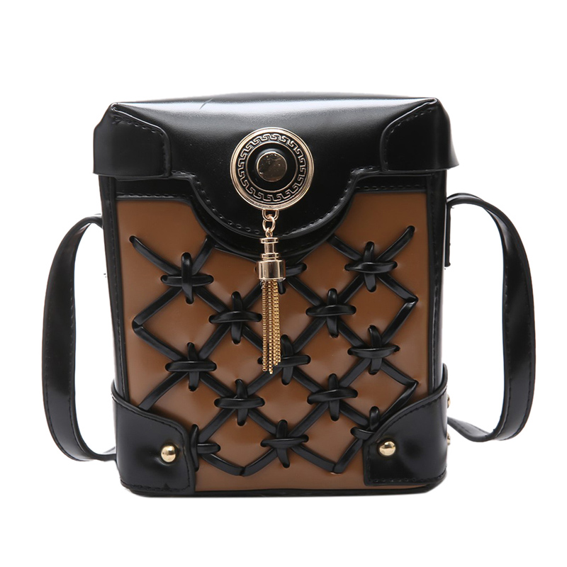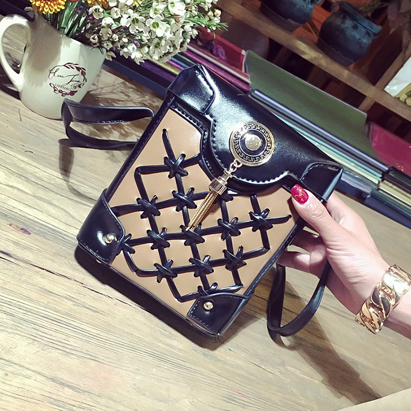 包包女新款潮撞色編織小箱子包流蘇單肩女包韓版斜挎包小方包