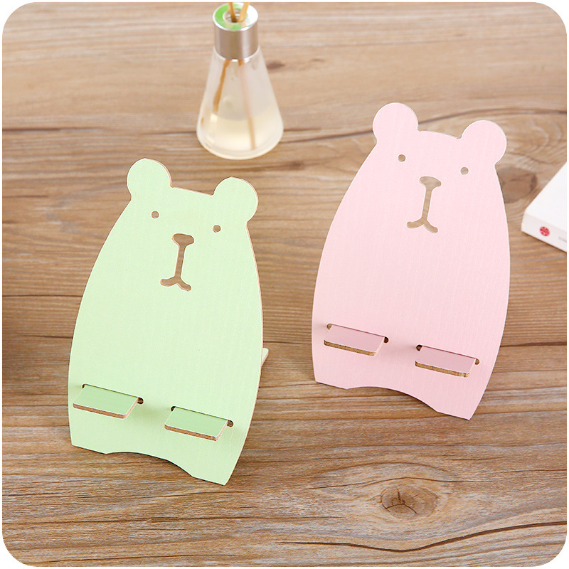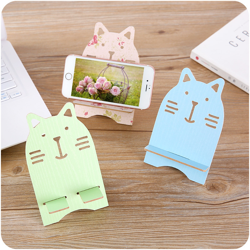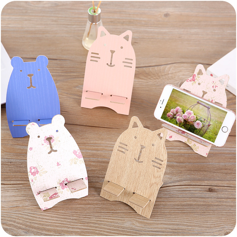 / 創意木質桌面懶人簡易組裝手機座看視頻手機平板卡通萌寵可愛機架