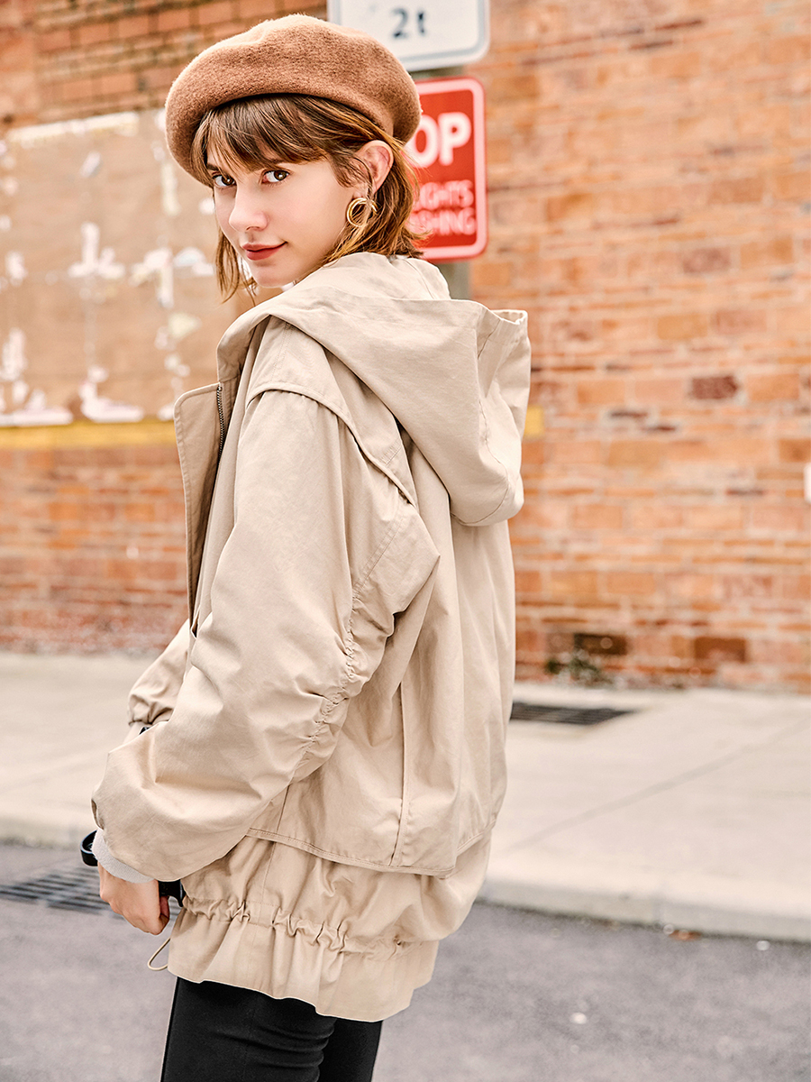 / MG小象輕薄棉衣女秋冬裝2018新款韓版時尚寬松bf學生連帽寬松外套