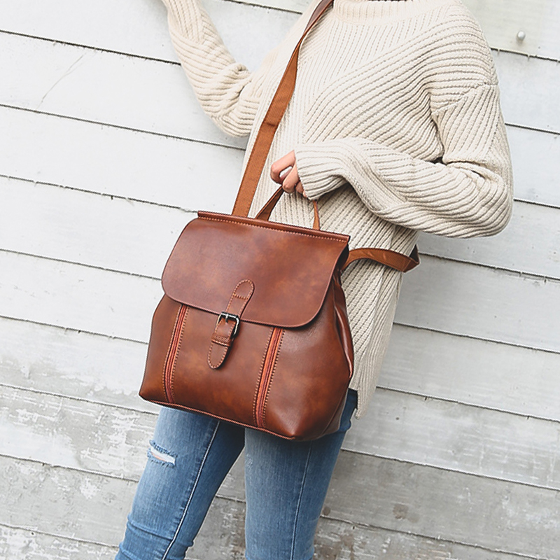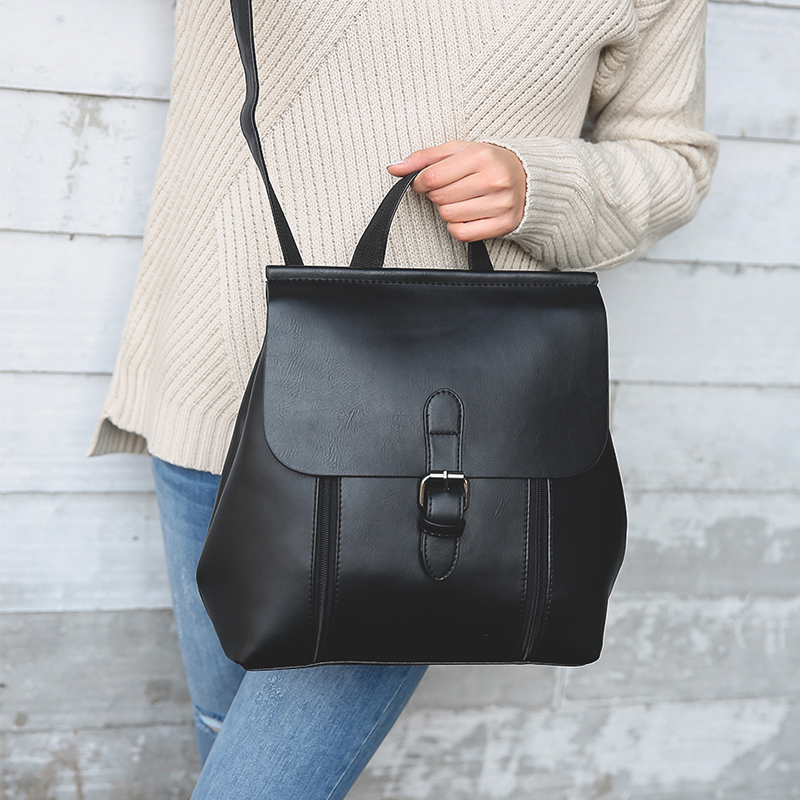 雙肩包女新款韓版學院風pu休閑背包復古小書包單肩雙肩兩用包