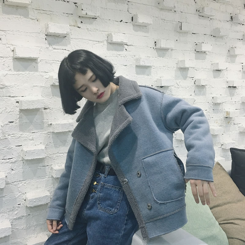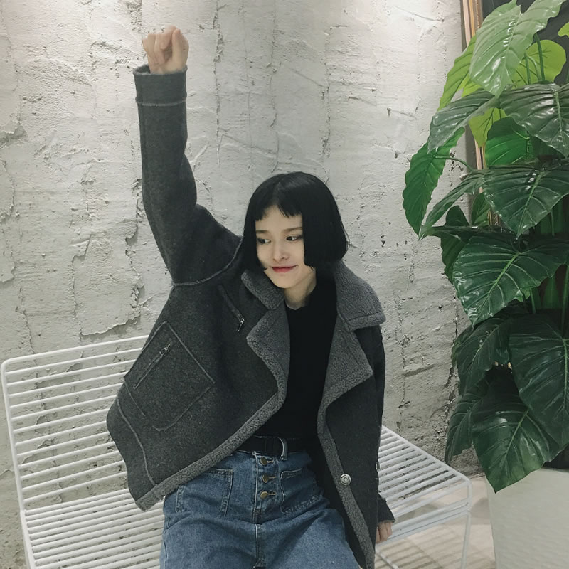 領口和袖口都有露出羊羔毛來 看起來軟綿綿的 特別可愛