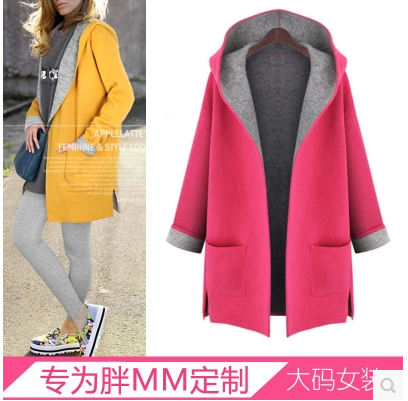 / 歐美女裝2017秋冬裝新款胖mm中長款連帽風衣大碼顯瘦開衫毛呢外套