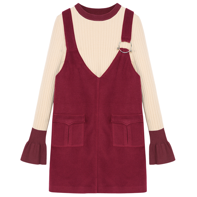 毛衣-米駝拼紅|毛衣-米駝拼咖色|吊帶裙-淺咖色|吊帶裙-暗紅色|毛衣-米駝拼紅第二批 11.28-12.2發貨|吊帶裙-暗紅色
