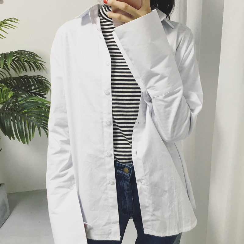原宿襯衫女長袖百搭復古學生學院風bf條紋韓版外穿風襯衣街頭寬松