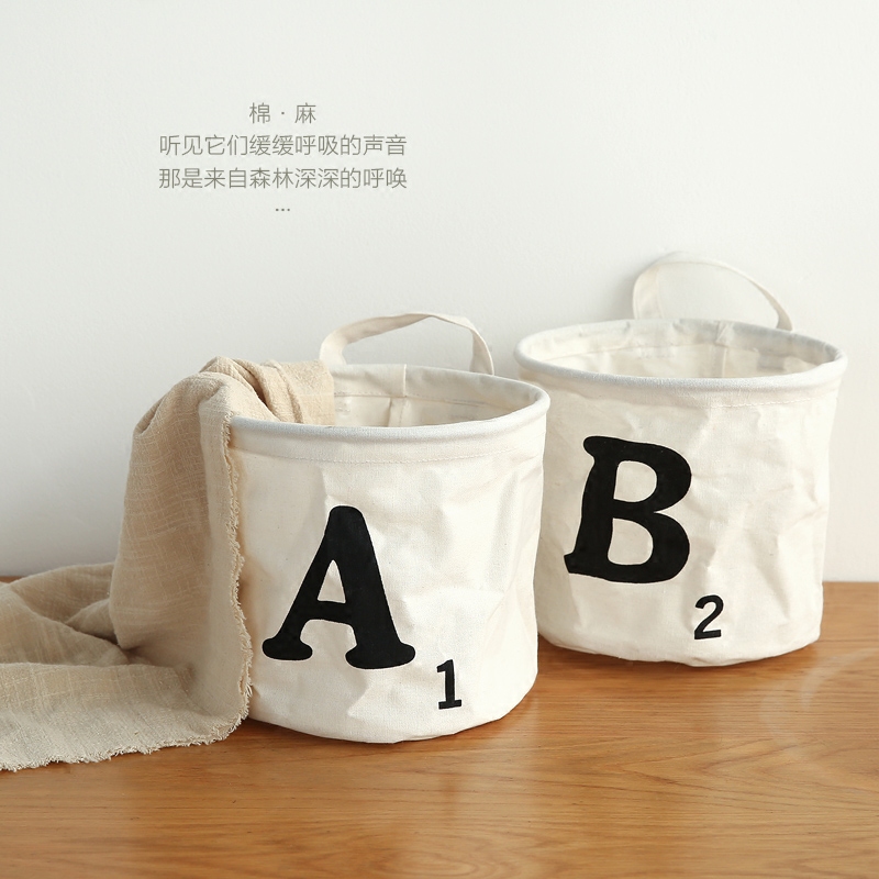 帆布藝收納桶桌面收納雜物化妝品零食收納筐可洗防水掛袋