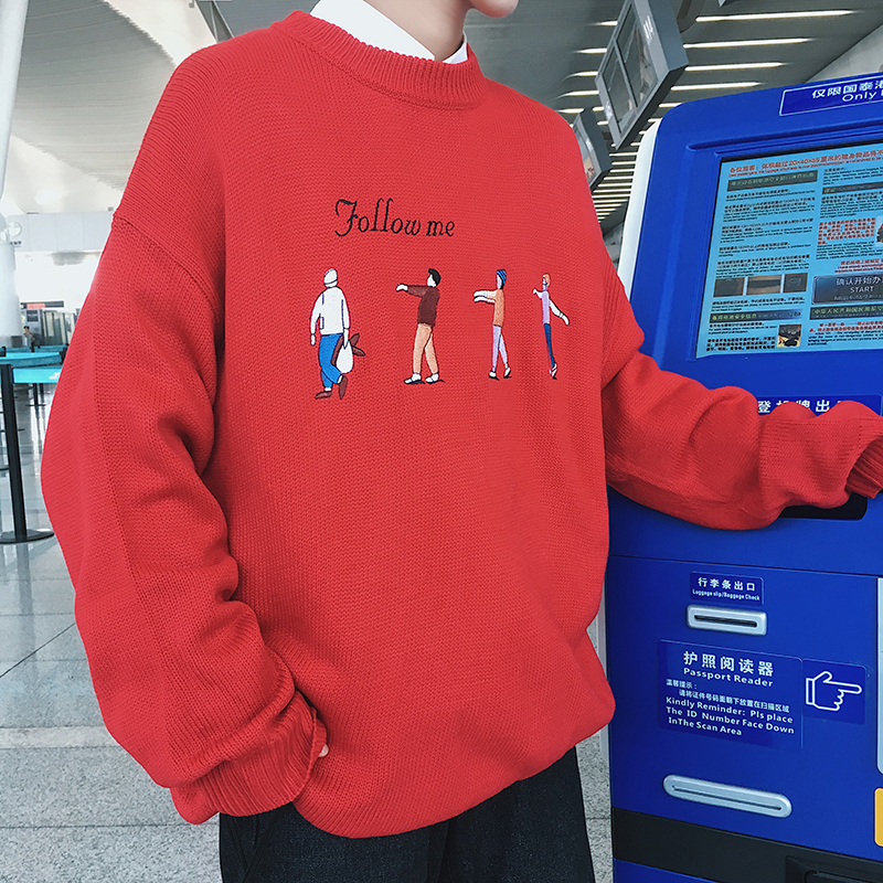 / 百搭刺繡潮牌男士毛衣新款百搭寬松上衣秋季韓版潮休閑針織衫套頭