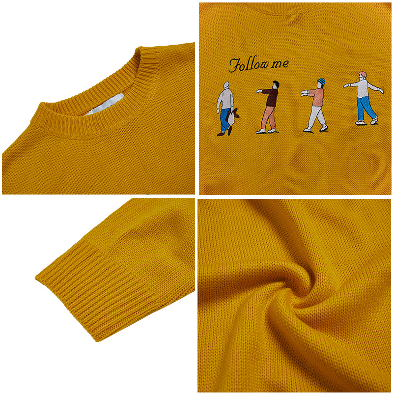 百搭刺繡潮牌男士毛衣新款百搭寬松上衣秋季韓版潮休閑針織衫套頭