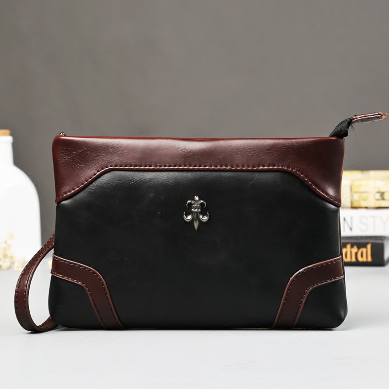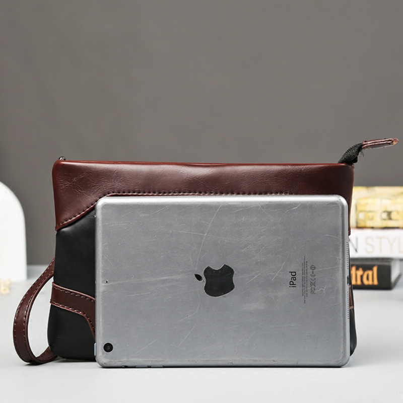 潮流復古撞色男士手拿包新款鉚釘手腕包休閑商務iPad包