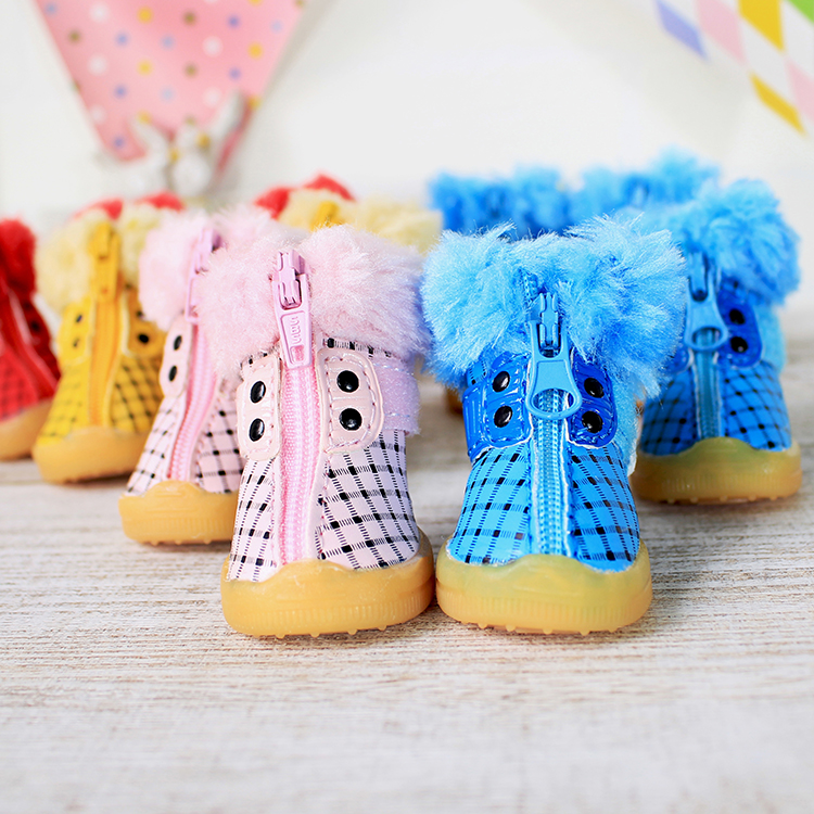 / 英倫格紋狗狗鞋子小狗泰迪比熊貴賓博美4只寵物秋冬鞋四色