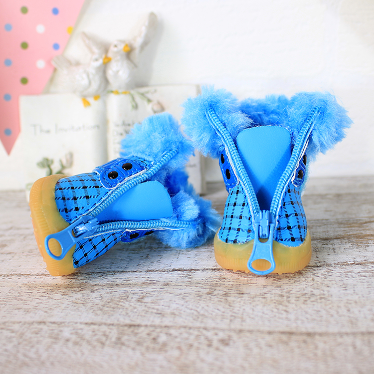 英倫格紋狗狗鞋子小狗泰迪比熊貴賓博美4只寵物秋冬鞋四色