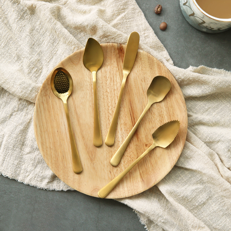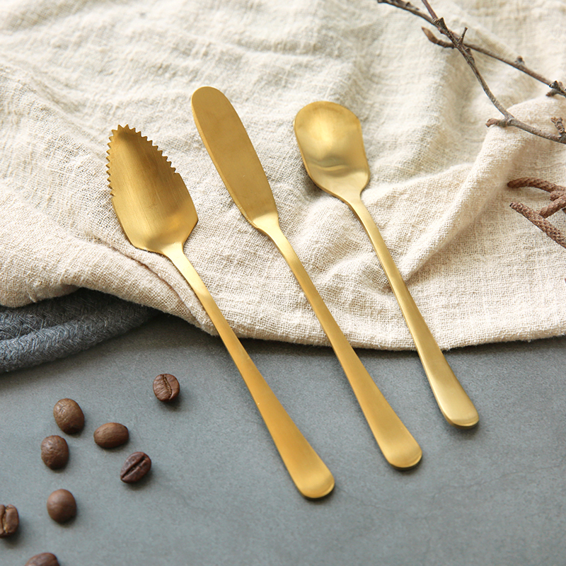 云木雜貨 北歐風金色不銹鋼勺子咖啡牛油刀蛋糕水果雪糕甜品勺