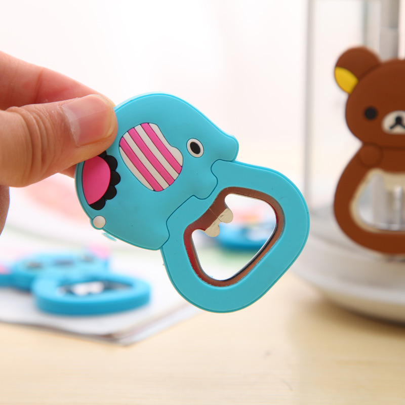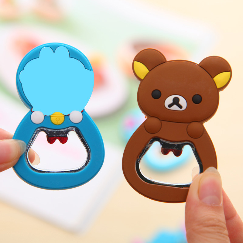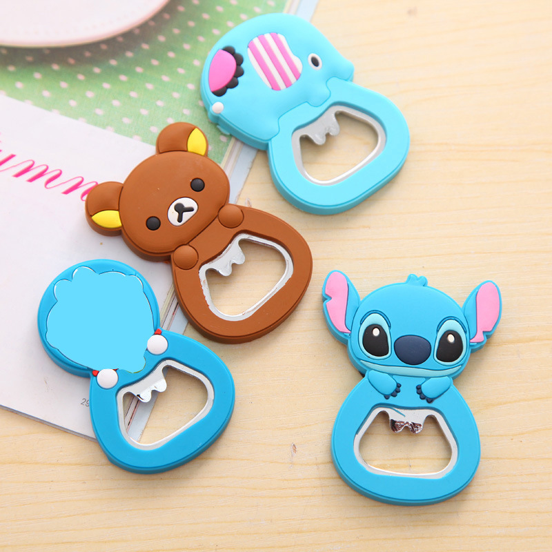 / 多功能啤酒開瓶器可愛卡通軟硅膠啟瓶器創意啤酒扳起冰箱帶磁性貼