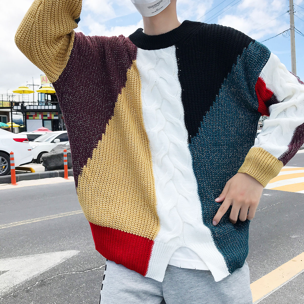 男士毛衣韓版潮流秋季休閑男裝港風寬松套頭上衣情侶外套針織衫
