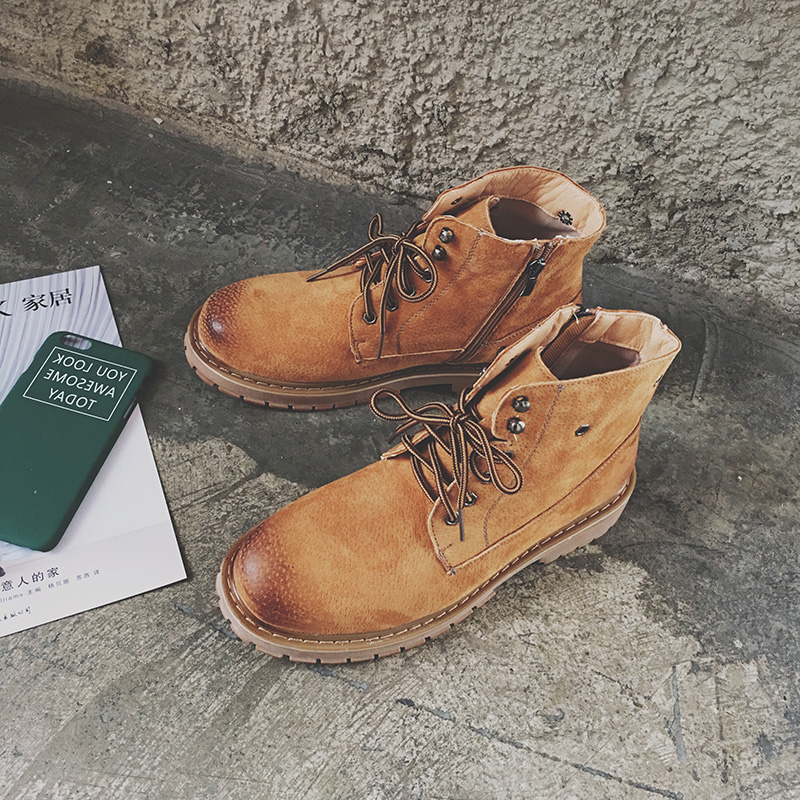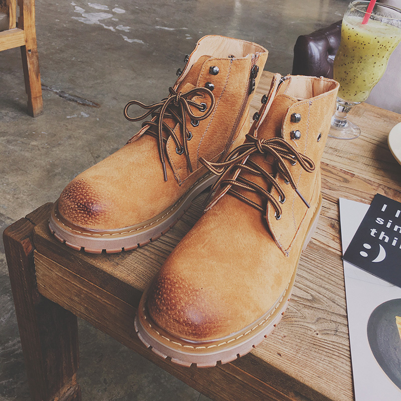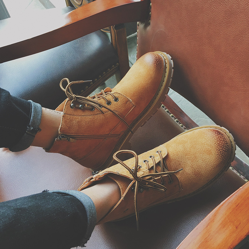 男裝韓版加絨加厚頭層豬皮馬丁靴柔軟牛筋底登山鞋