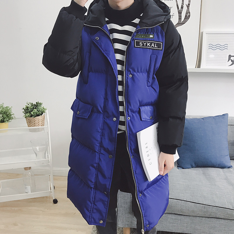男裝拼色羽絨棉棉服韓版插肩袖男士長款棉衣外套