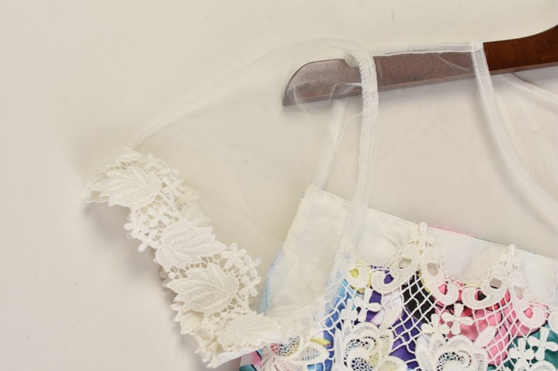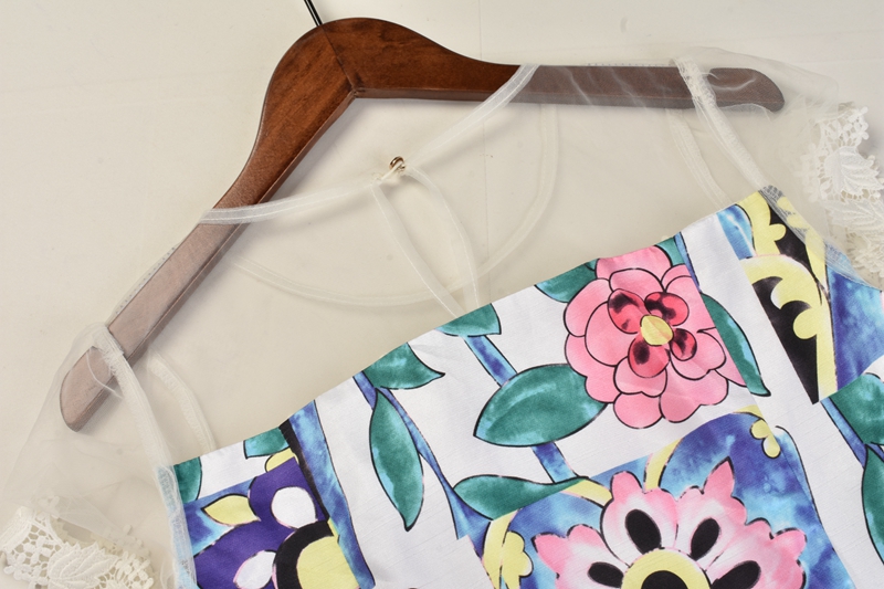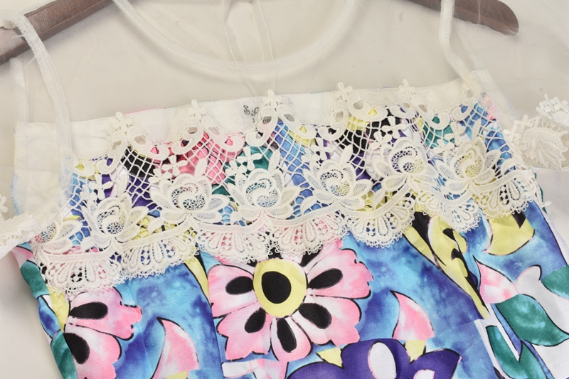 / 韓版蕾絲拼接印花側拉鏈時尚淑女休閑連衣裙春夏女裙