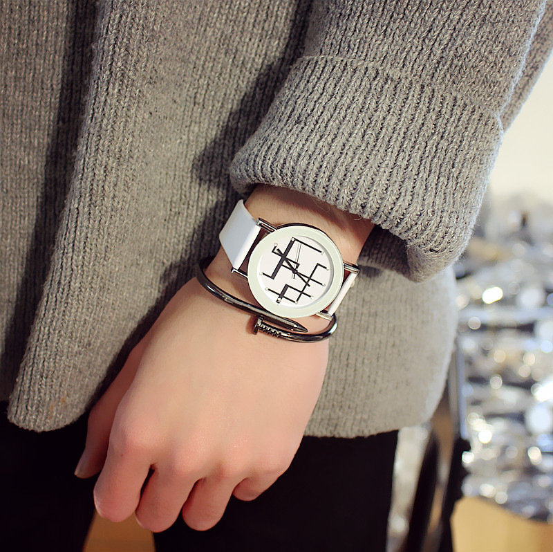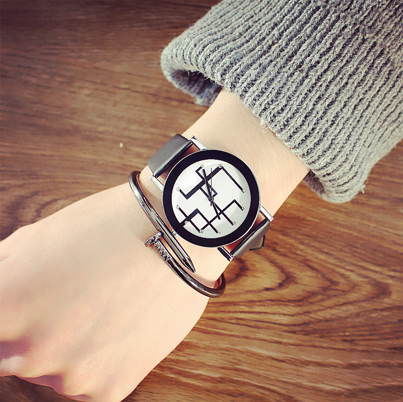 手表女學生韓版簡約復古時尚幾何圖案男表鹿晗同款個性石英腕表潮