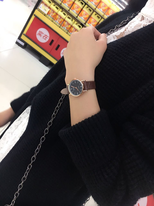 新品復古男手表女學生韓版簡約石英表防水超薄皮帶潮流情侶表女表