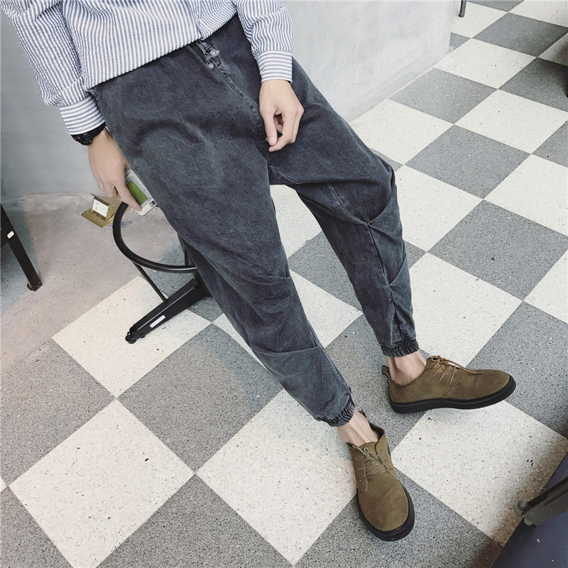 男裝韓版吊襠哈倫褲錐形小腳褲男士冬季復古牛仔褲